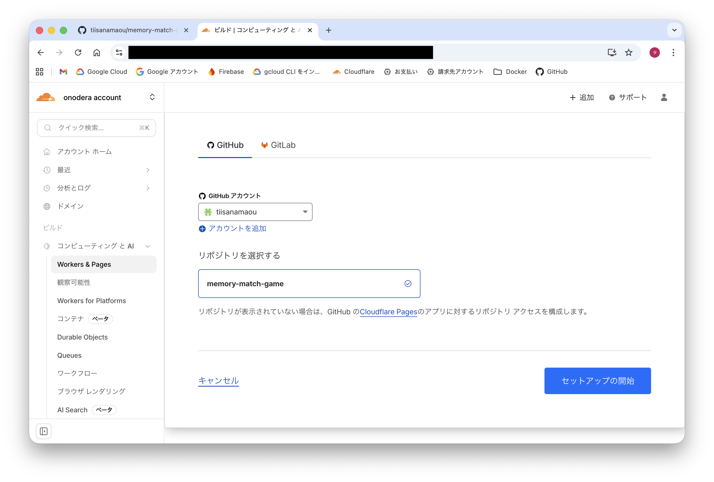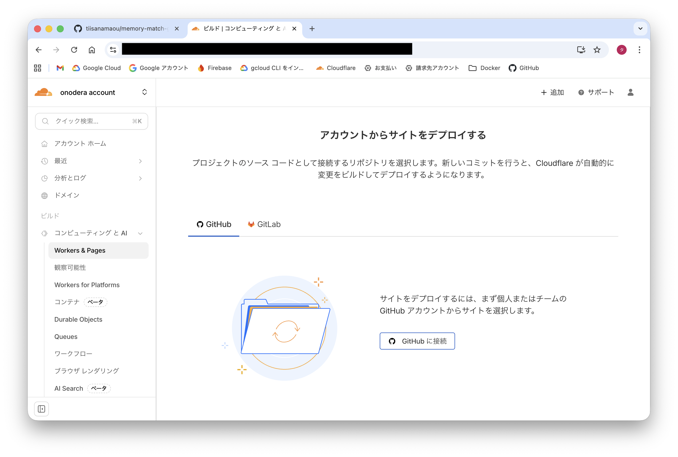 アカウントからサイトをデプロイするという画面になったら、下の方にある"Githubに接続"を押します