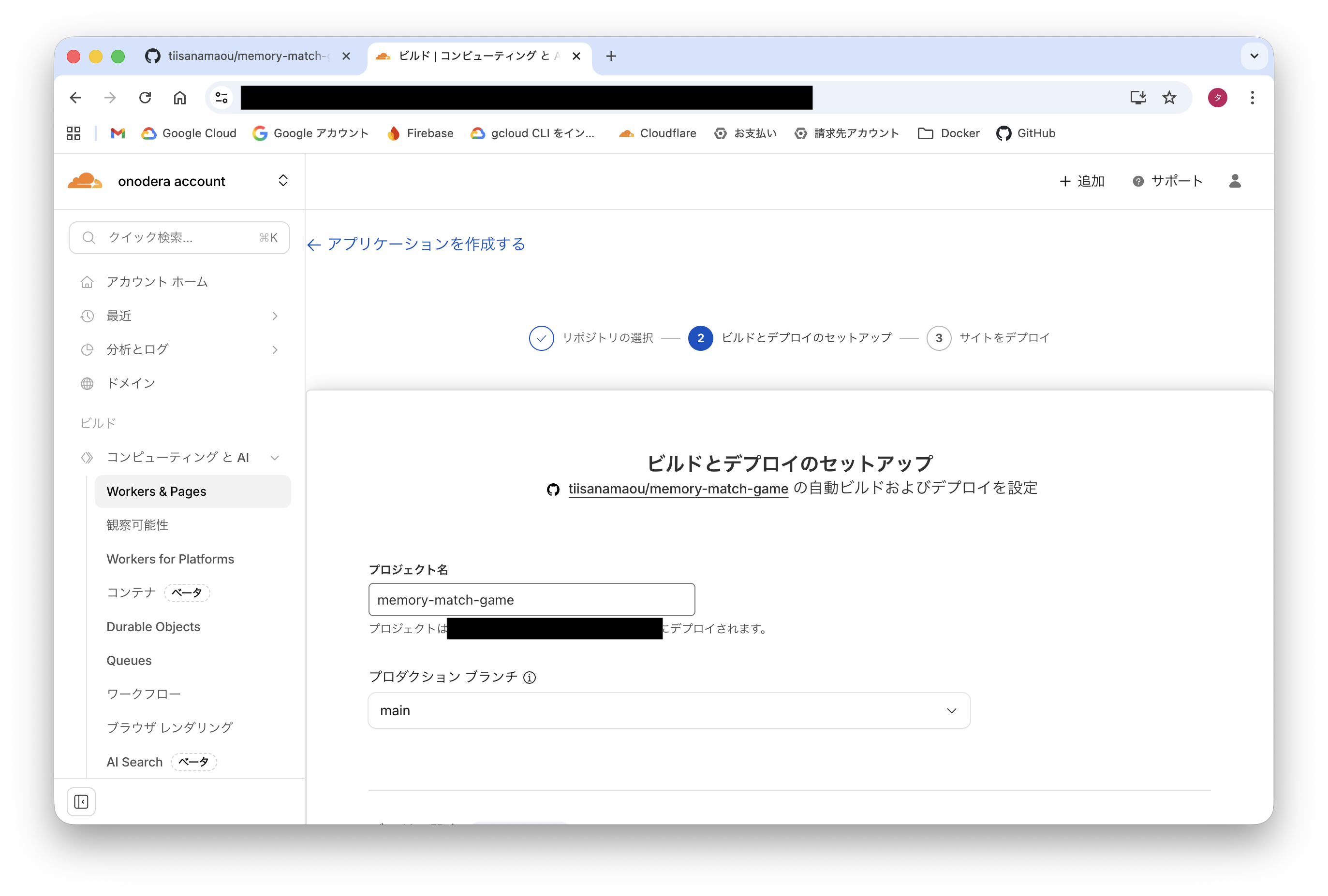 “プロジェクト名"と"プロダクションブランチ"を入力・選択します