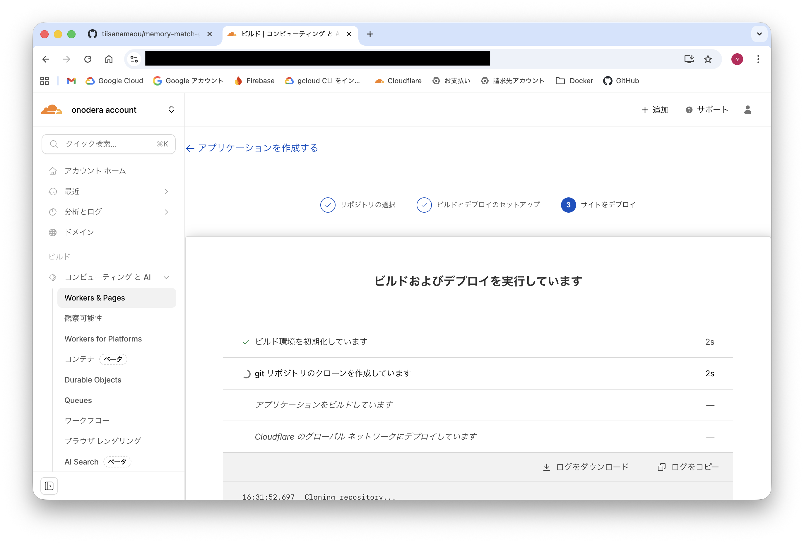 “ビルドおよびデプロイを実行しています"と表示されるので待ちます