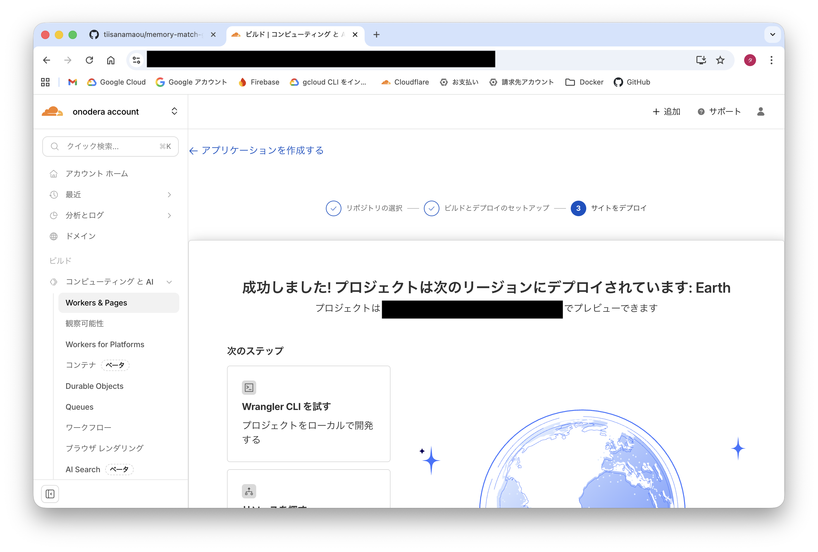 表示されているURLに行くとデプロイしたサイトが表示されています
