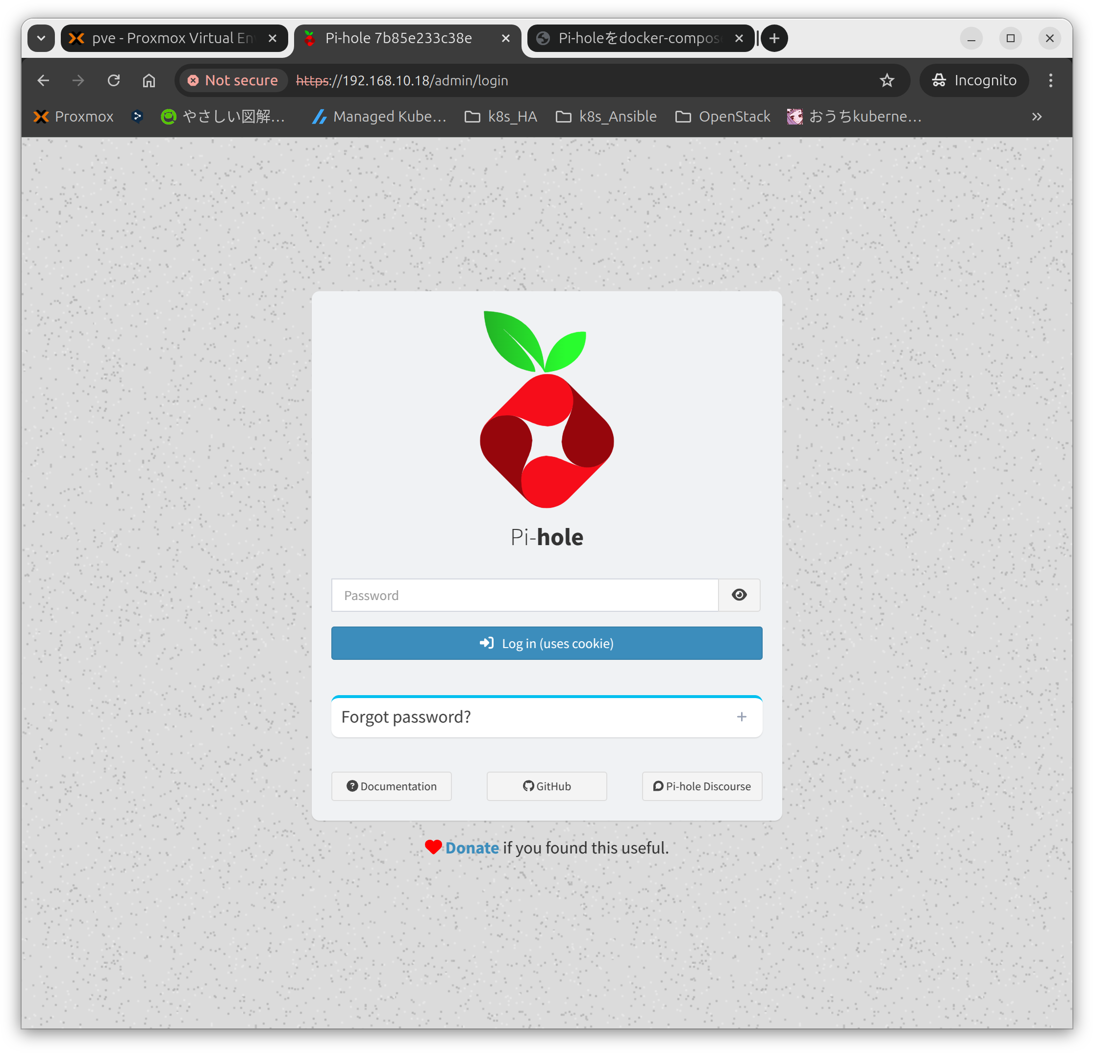 ログインパスワードはcompose.yamlの"WEBPASSWORD:“で指定したものを入力する