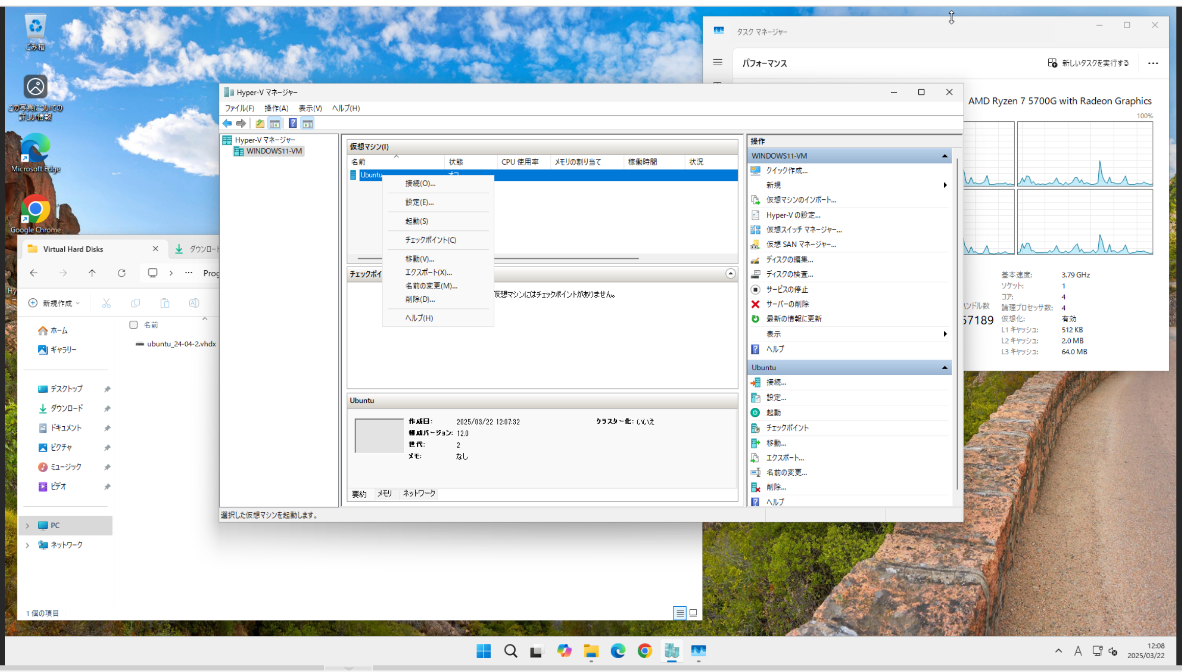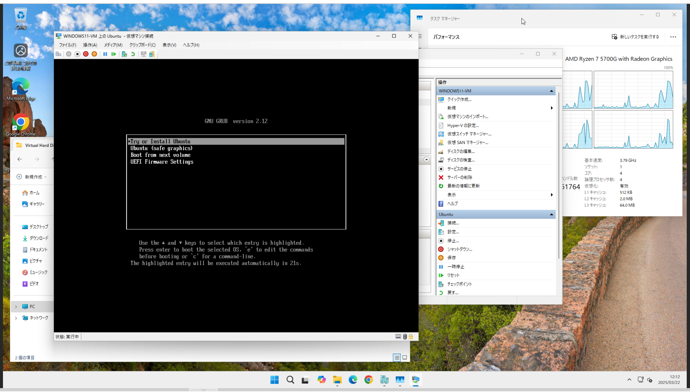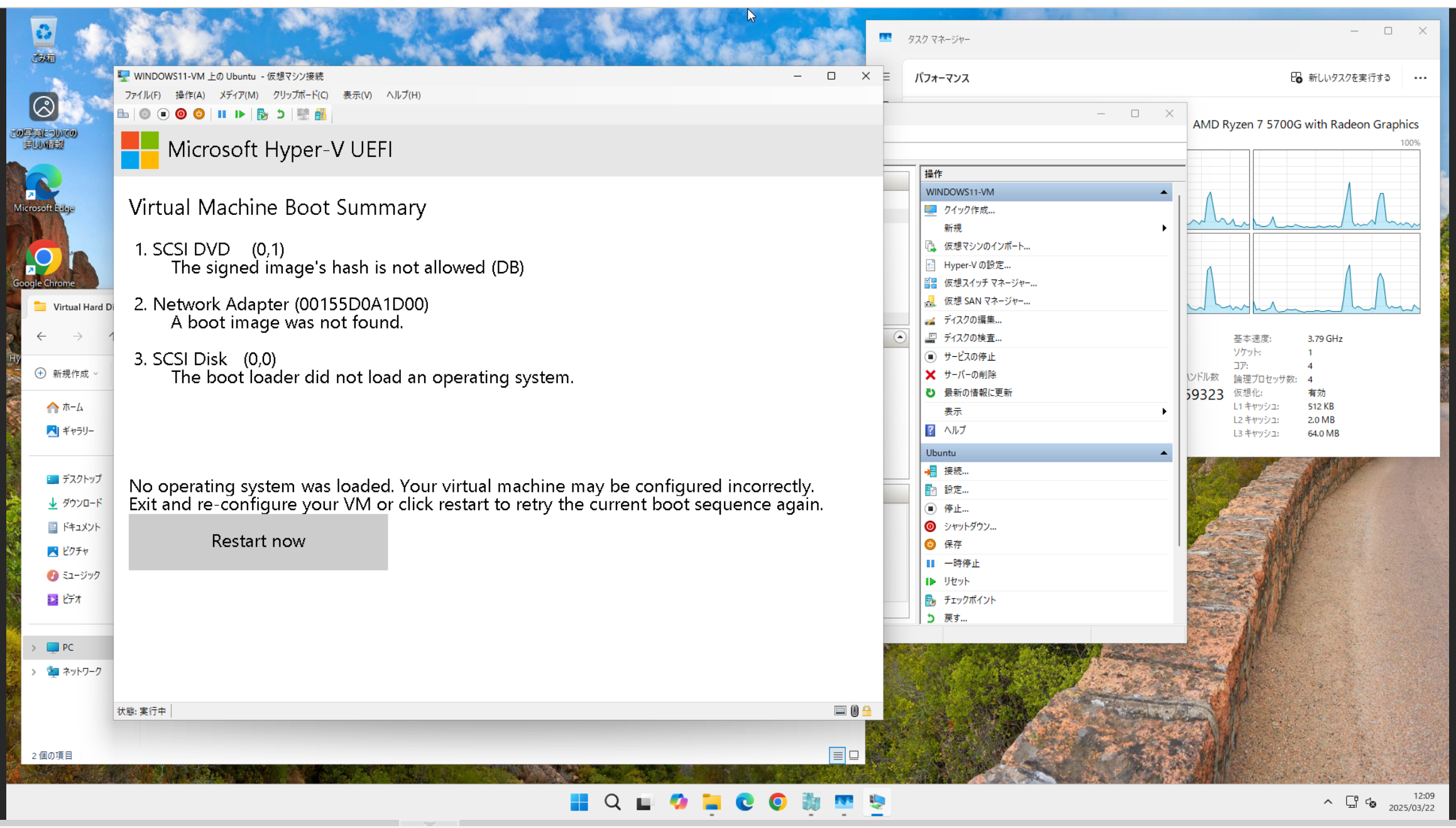 右のメニューの"接続"をクリックすると仮想マシンの画面が表示されます