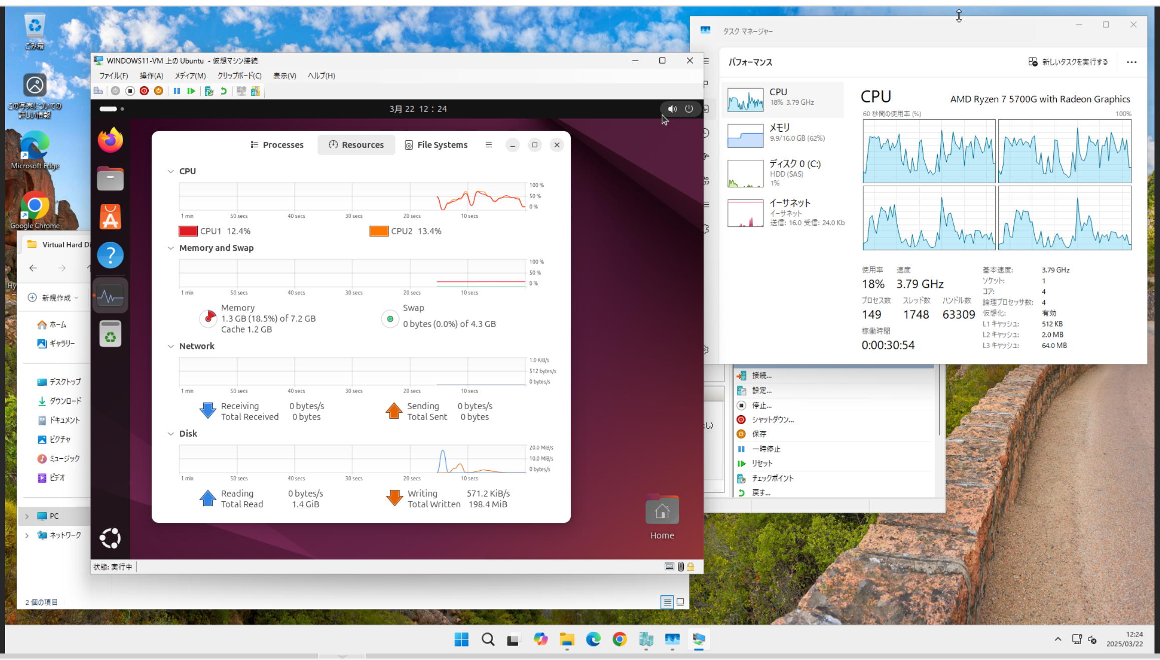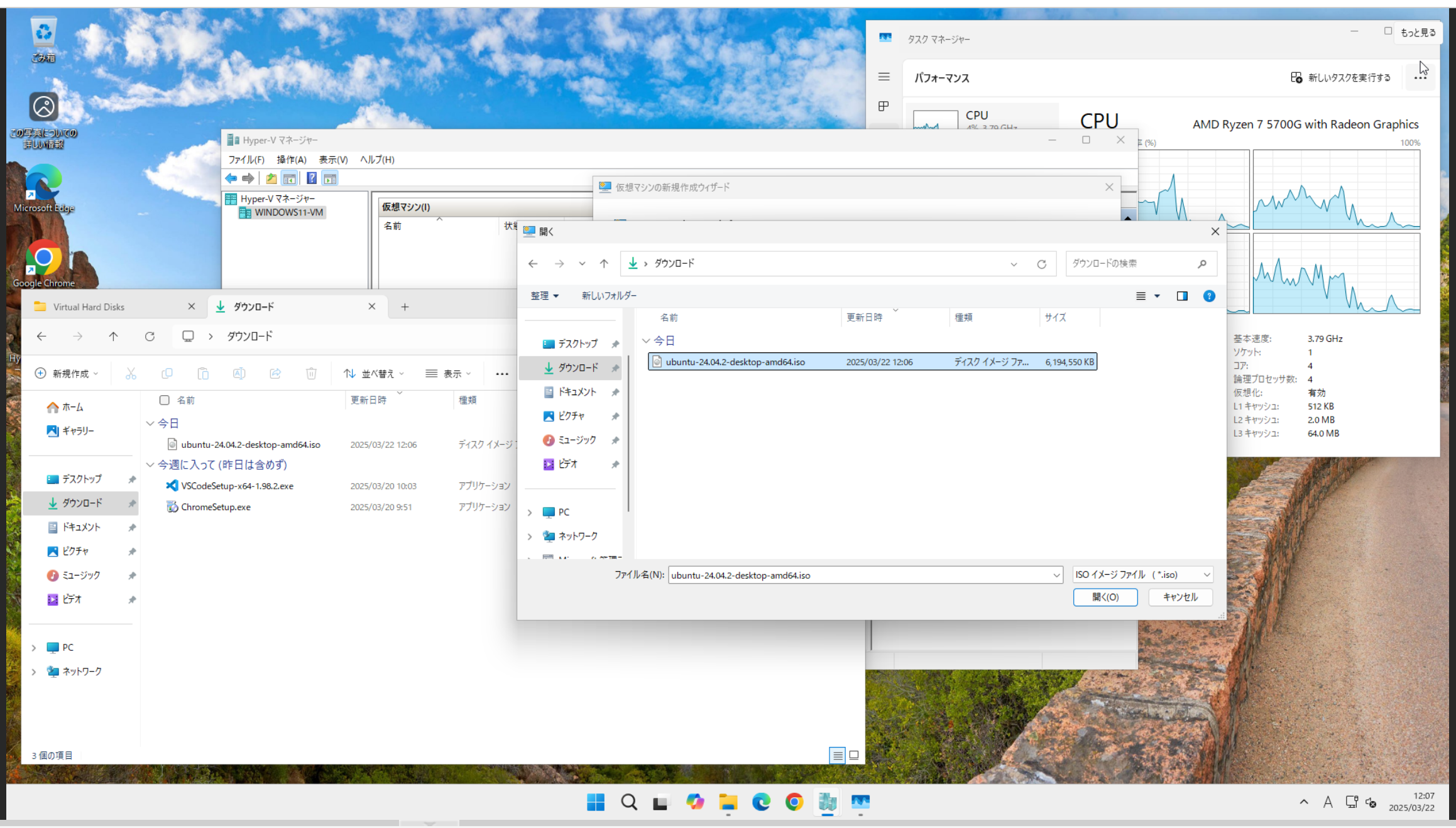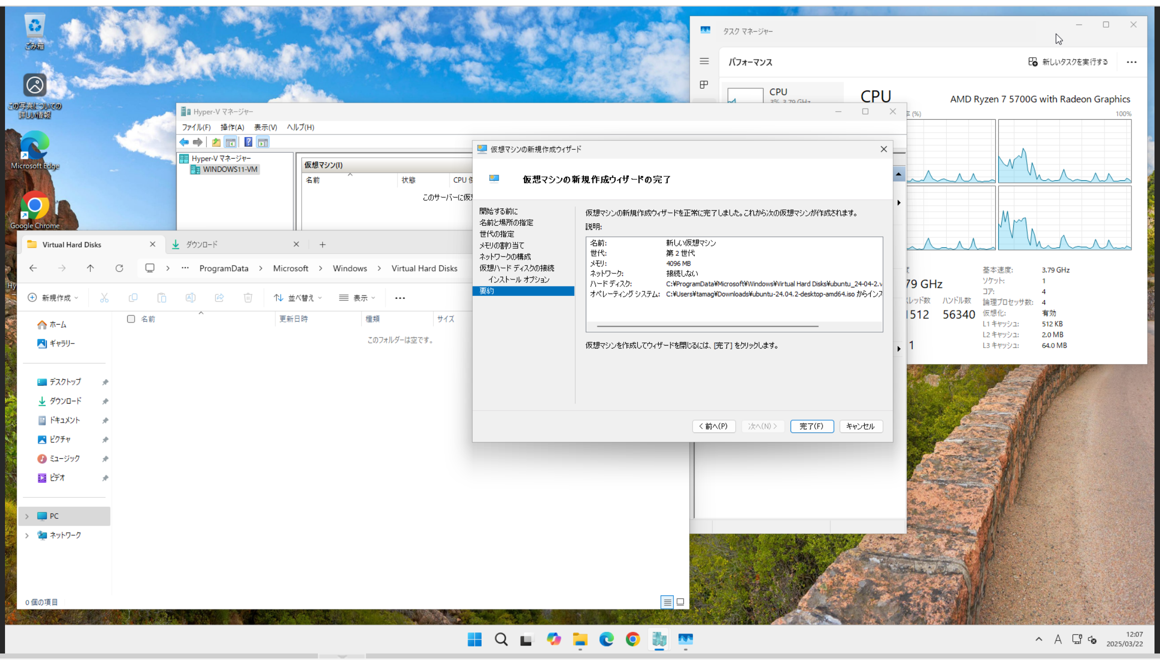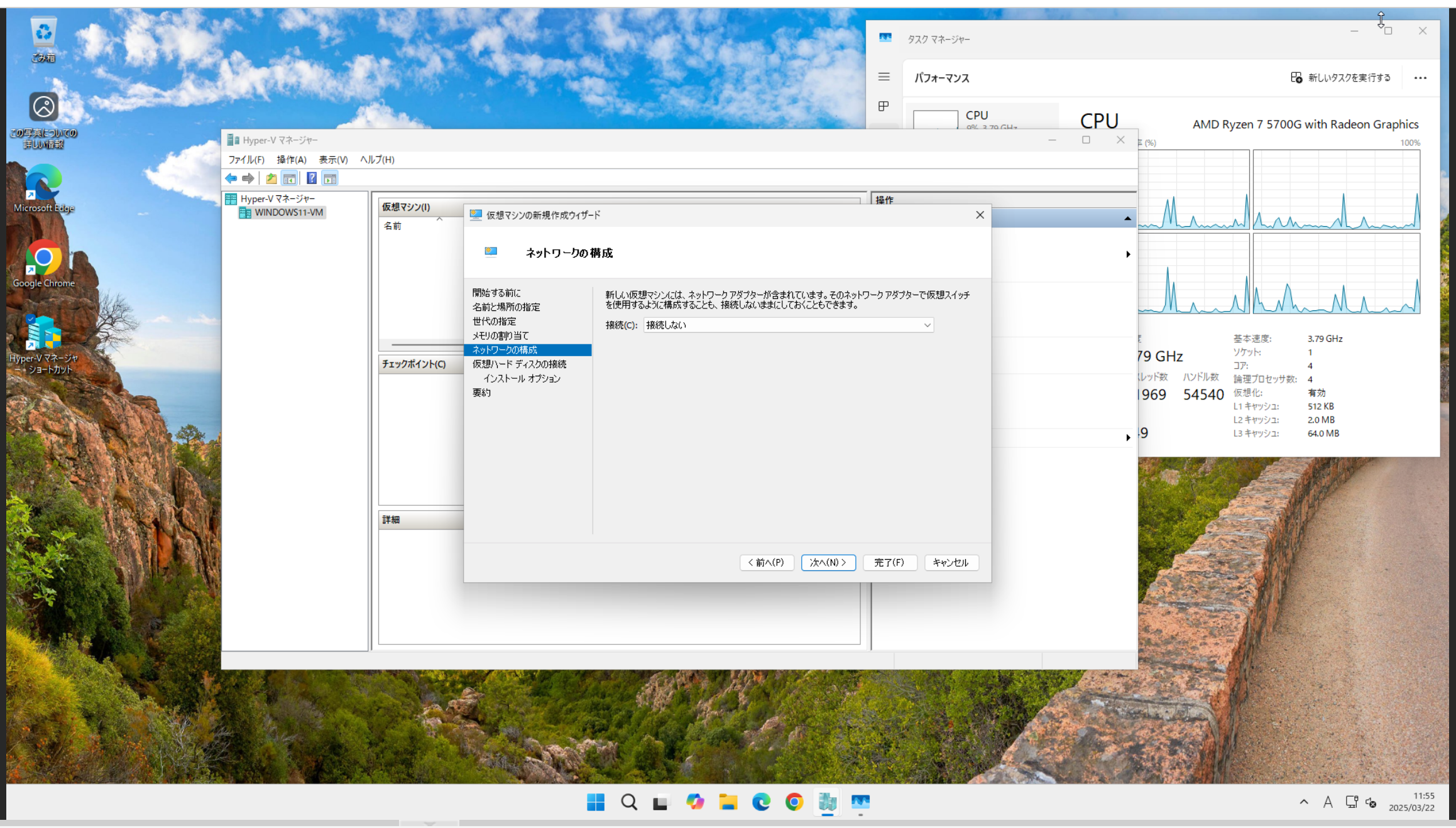 右のメニューの"接続"をクリックすると仮想マシンの画面が表示されます