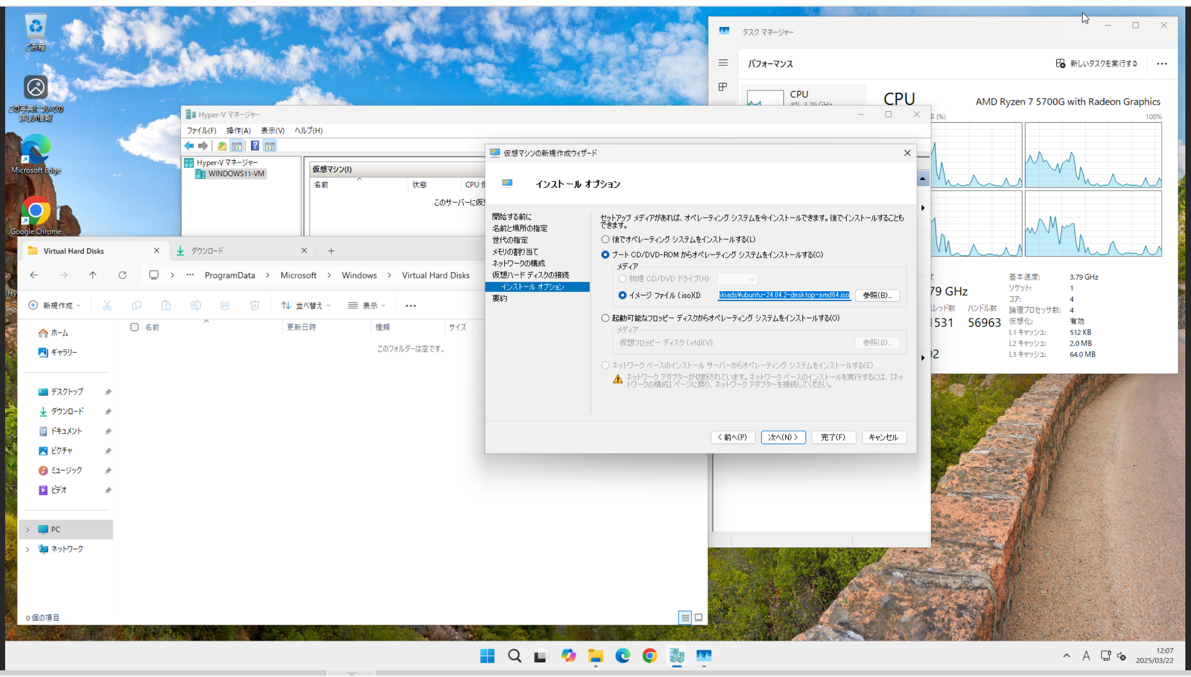 “ブートCD/DVD-ROMからオペレーティングシステムをインストールする"を選択し、“イメージファイル"の右の"参照"をクリックしてISOファイルを選択します
