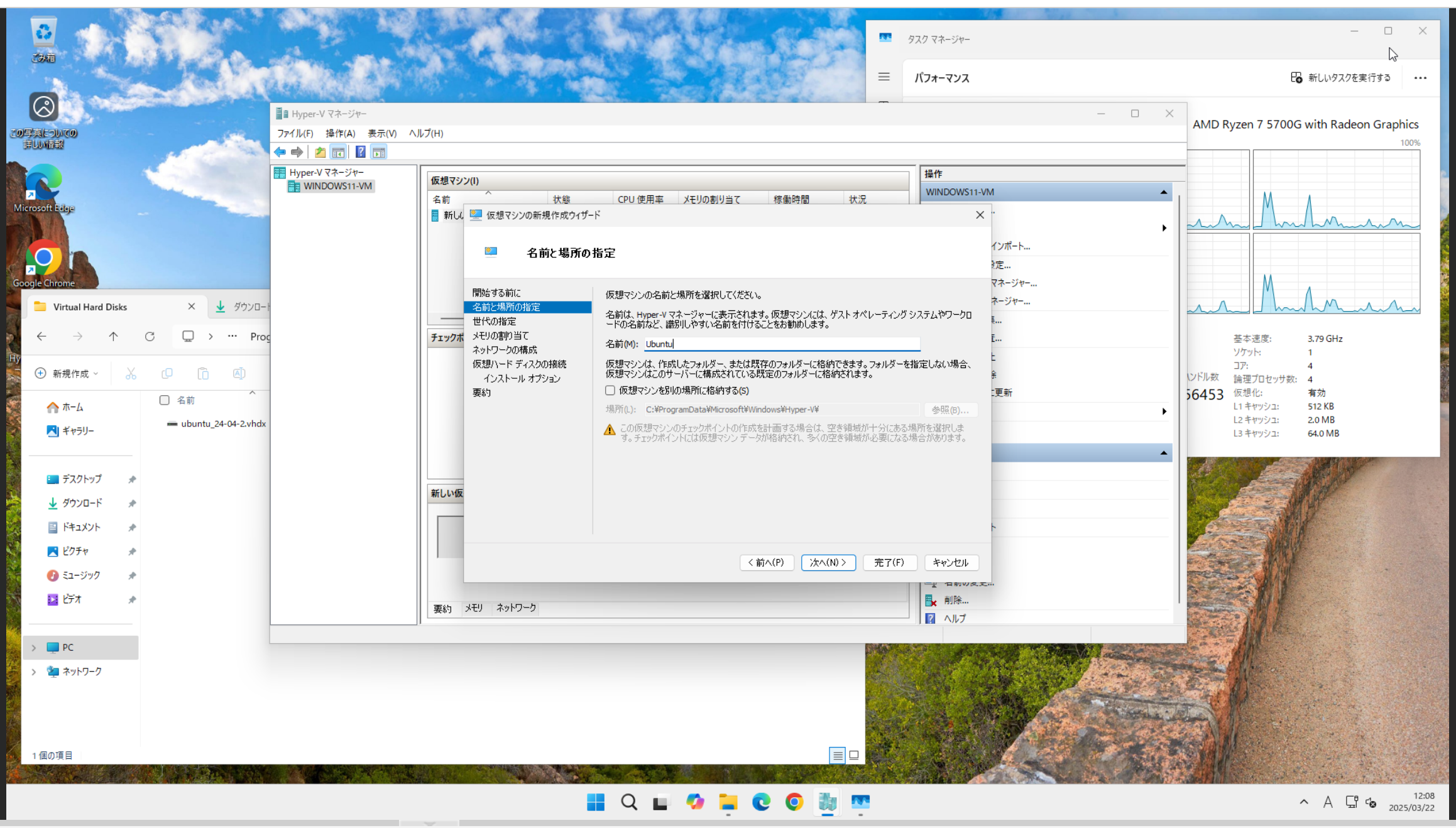 名前が"新しい仮想マシン"となっているので右クリックして名前を変更します